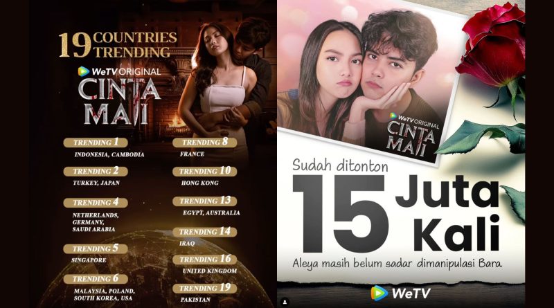 WeTV Original Cinta Mati, yang dibintangi oleh Aliando Syarief dan Aisyah Aqilah, telah meraih pencapaian luar biasa dengan tidak hanya mencuri dengan trending di 19 negara dan telah ditonton sebanyak 15 juta kali. Serial yang baru memasuki episode ketiga ini berhasil menarik perhatian penonton dari berbagai belahan dunia. Keberhasilannya membuktikan bahwa cerita yang dihadirkan sangat relate dengan kehidupan remaja masa kini, menghadirkan konflik-konflik yang sering dialami, seperti cinta pertama yang penuh drama dan pentingnya kehadiran orang tua sebagai sosok teman dalam kehidupan sehari-hari.